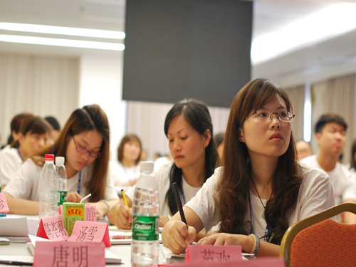 6月12日早上,“金牌店长特训营”课程正式开课。朱越民老师从店长角色定位与职业素养、认识品牌的力量、店铺形象管理、把脉客户心理需求、解除异议促成交、竞争时代服务制胜、终端的人力资源管理、管理沟通提升效率、下属辅导与教练、高效团队协作十个章节去打开店面运营思路,让参训店长能够系统的,有方法的根据当地市场,去带领自己的团队共同提升专卖店的管理营运及服务水平,提升品牌终端号召力以促进业绩的增长,并通过分组实战演练巩固学员们对课程的认识。参训学员被分为了八个小组,以小组为单位开展学习、讨论和竞赛,学员们除了认真听课,也积极参与到老师安排的互动节目中,为培训营造了愉悦而轻松的学习氛围。